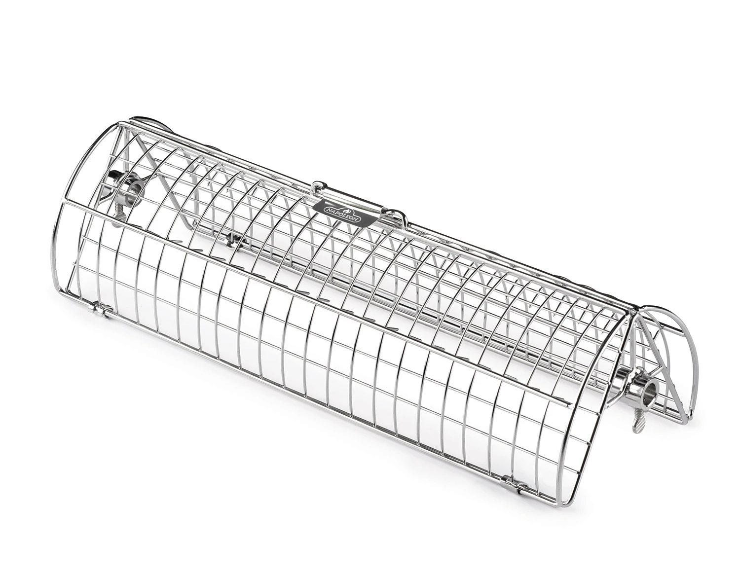 Mit dem Napoleon Edelstahl Drehspieß Korb lässt sich das verschiedenste Grillgut ganz einfach am Spieß braten. Der Korb besteht aus zwei Kammern, die durch eine Klammer zusammengehalten werden. So ist das Grillgut sicher und kann bei der Drehbewegung nicht nach unten fallen.