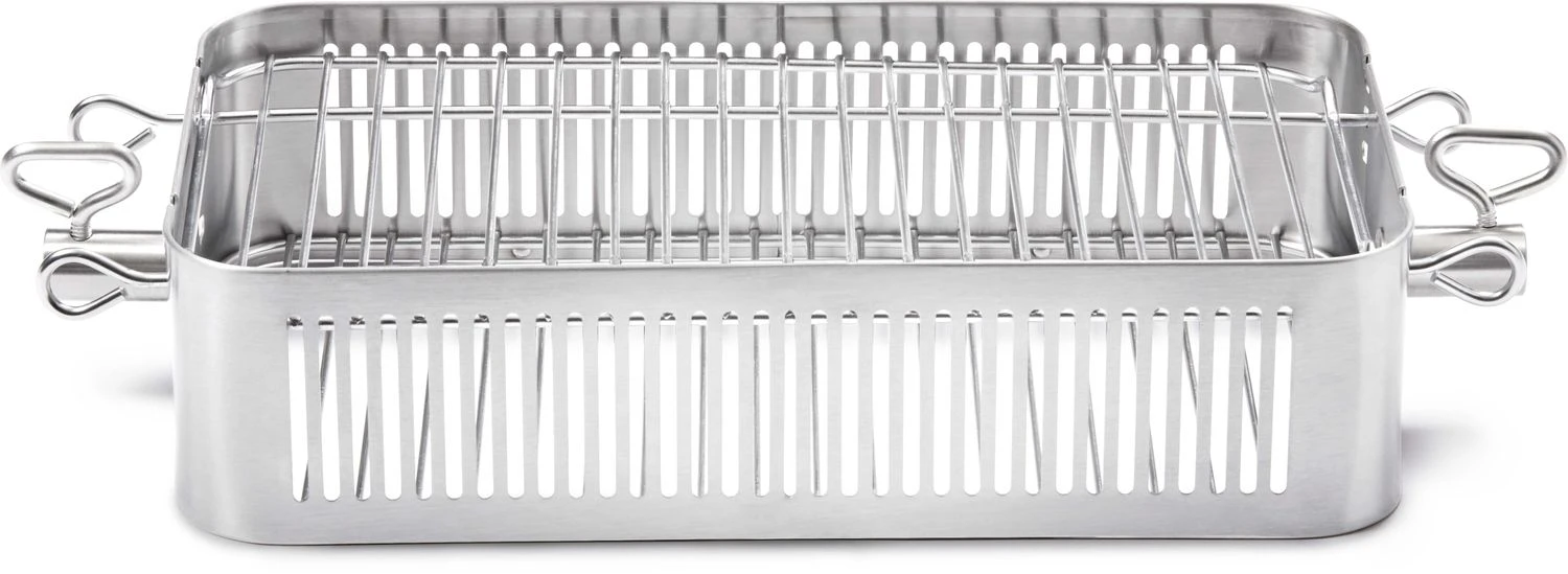 Der Napoleon Drehspieß-Korb aus Edelstahl mit verstellbarem Gitter
