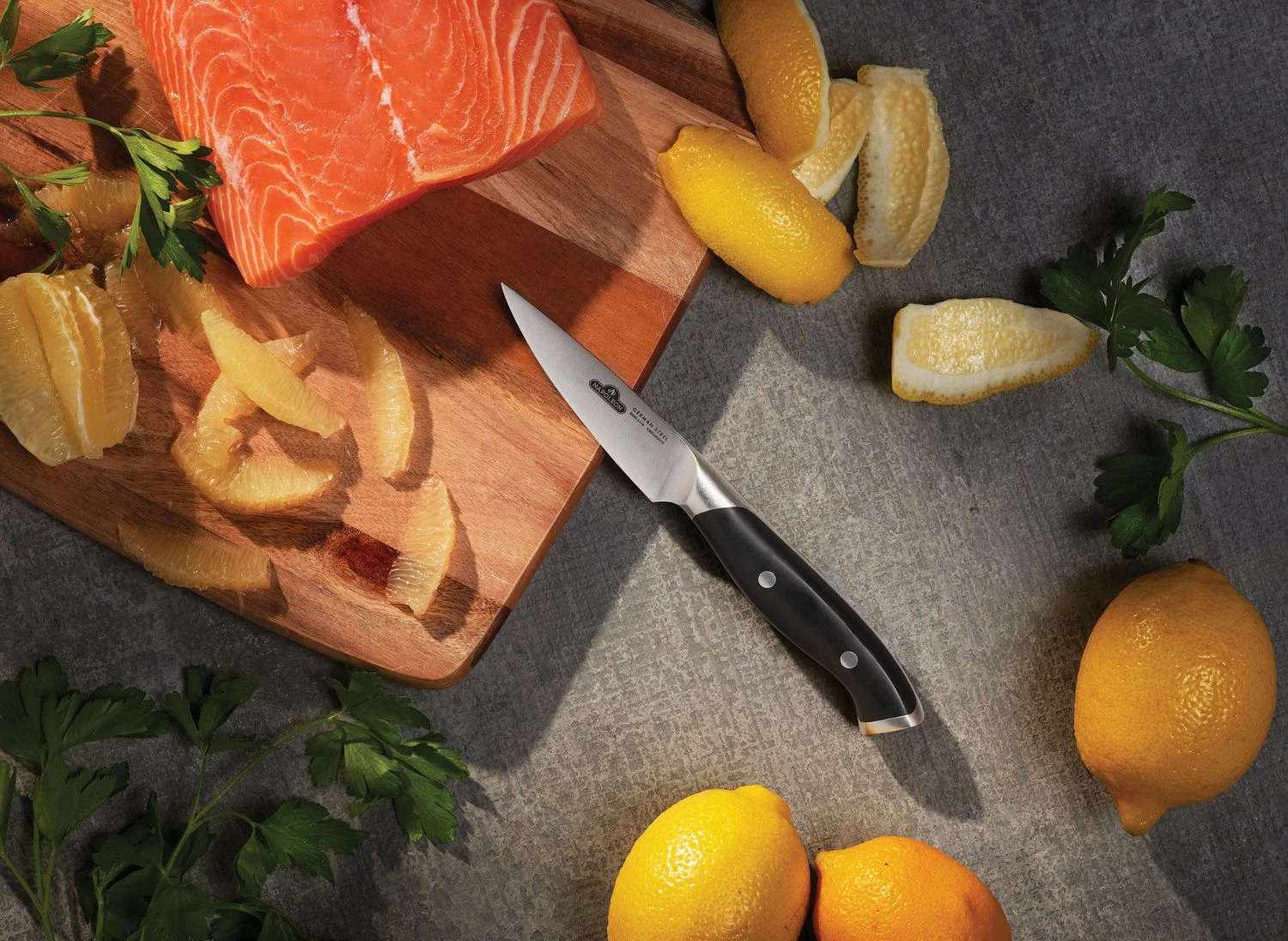 Mit der kleinen spitzen Klinge lassen sichkomplizierte Schneidarbeiten wie Schälen, Entkernen oder sogar das Vorbereiten von Garnelen ideal ausführen.