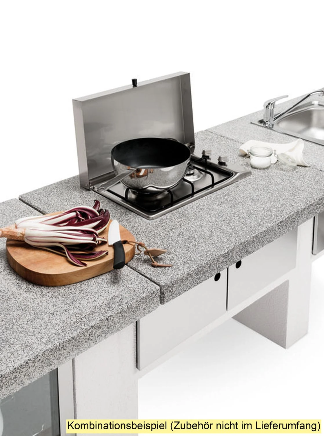 - 1 x Palazzetti Gartenküche: Modul 2- flammige Gaskochstelle mit Edelstahl Abdeckung, Marmortech grau, bestehend aus einzelnen Betonteilen zur Selbstmontage